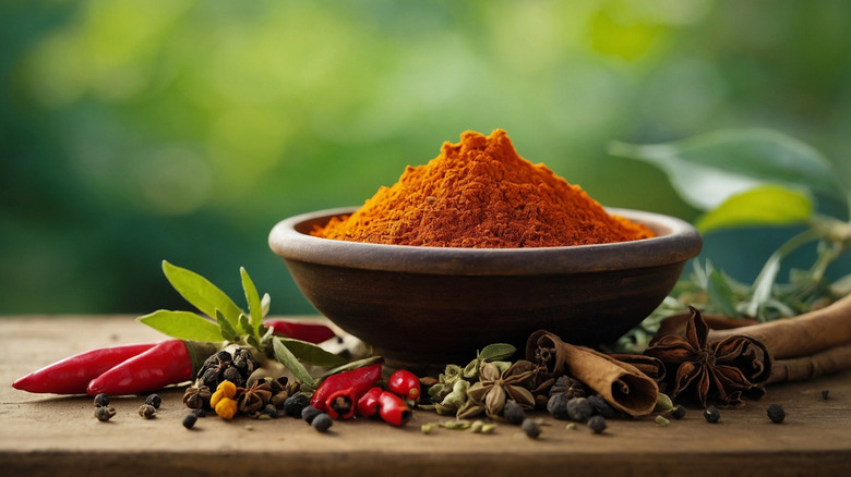 Because chili powder is used as a flavor base for the stew, it contains a blend of different spices meant to give the dish more depth. Chili powder can contain different mixes of chiles depending on the brand, but the most common are cayenne and paprika. Beyond that, it usually contains other staples like cumin, garlic powder, onion powder, and oregano. It's more of a complete seasoning experience meant to be something you can dash right onto steak or grilled corn and be done with it. And while cayenne by itself is quite spicy, because chili powder is mixed with other ingredients, it tends to be more mild and balanced.