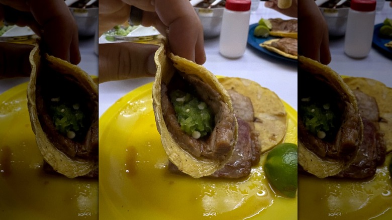 Per reporting by El Restaurante, the modest shop was first opened by a man named Don Juan Hernandez Gonzalez over 60 years ago. Today, it remains a family business operated by Don Juan's son, Mario Hernandez Alonso. For a long time, the shop was a regular hotspot for Mexican politicians and government officials, though now the queue consists of far fewer suits and way more international tourists. Its signature item, a beef filet called the gaonera taco, is named after the patronage of a bullfighter who once supported the restaurant, señior Rodolfo Gaona.