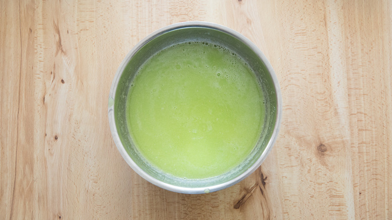 Add the sugar mixture, lime juice, and 3 to 4 drops of green food coloring and blend again until well combined. Add another 1 to 2 drops of food coloring or more to reach the color desired.