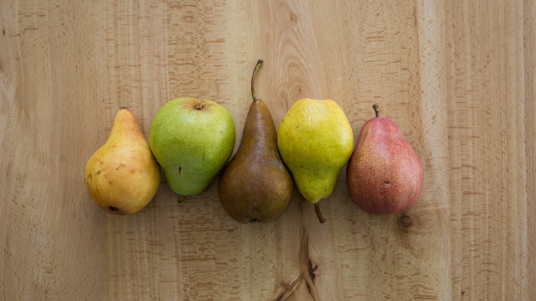 We wish we could get our hands on a few perfect Genovian pears, but in the meantime, we'll use fruit we can get in the real world. We recommend red d'Anjou pears because they're a sweet, juicy, and smooth variety (green d'Anjou pears will work as well). Bartlett pairs are also sweet, soft, and juicy when ripe and are another good choice. Comice pears and Asian pears are other varieties often chosen for their sweetness and would also work in sorbet.