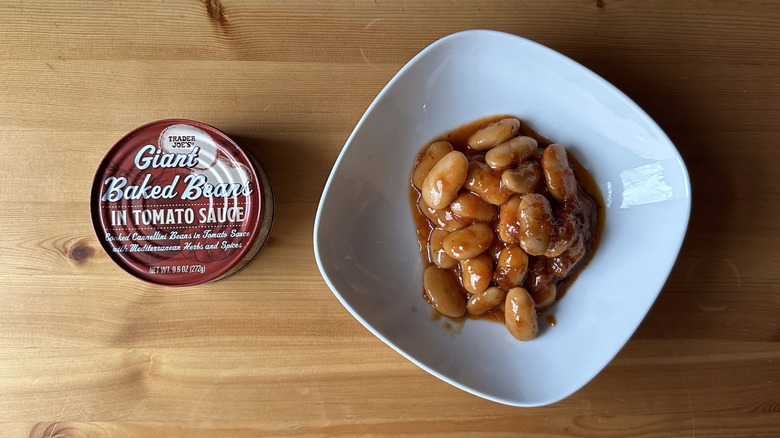 The cannellini beans are, in fact, giant. One or two beans is an entire mouthful. The accompanying sauce is quite herbal, with a strong dill note that makes it taste especially fresh. But there's a reason these baked beans don't come in at the top spot on this list. The tomato sauce is super oily. In fact, I would say it's more like an oil-based sauce with some tomato mixed in rather than a marinara sauce. The beans could also be firmer. Even with those drawbacks, though, this is a delicious product, and it'll make your next summer dinner party side dish spread easier than ever.