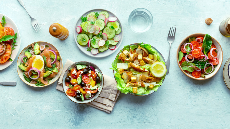 Another warm addition that will bring your salad to the next level is cooked grains. Think quinoa, farro, wild rice, bulgar wheat — the types of popular grains you'd see on a salad menu. They're all relatively cheap to buy, and you can get prepared microwave packs to save time. Most grains are cooked the same way as rice. Bring a pot of water or stock to a boil, add the grains, and simmer with a lid on until the liquid is absorbed. It's usually a good idea to let them rest for a few minutes before fluffing up.
