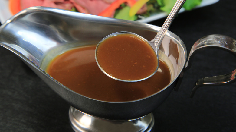 Of course, the au jus is what differentiates a roast beef sandwich from a French dip. While you aren't slow cooking the ribeyes with a wet method to create the au jus as you cook the meat, it's still a crucial component that a ribeye French dip can't be without. Luckily, you can easily prepare an au jus while your ribeye rests. You can even use the drippings leftover in the skillet or roasting pan after cooking the ribeye as the foundation for the au jus. Pour any leftover juices into a saucepan with your choice of seasonings like spices and herbs along with Worcestershire sauce and this Pacific Foods low sodium beef broth. Then, simmer the mixture for 8-10 minutes, pouring the au jus through a mesh strainer to catch any lumps or large debris.
