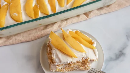 Morone happens to be a big fan of the no-oven aspect of this recipe, along with the fact that it's just a generally airy, refreshing treat. "I love how this is such a light dessert, and the fact that it involves no baking is also really great," she says, adding, "It ends up being really easy to make and will be perfect in the warmer months when you don't want to turn on the oven." Though you don't have to bake this cake, you do have to give it plenty of time to chill in the fridge, as you do with most icebox cakes. In total, the mango float needs to chill for at least 6 hours, but this means that it's a great make-ahead recipe that you can easily prepare the morning or night before you plan to serve.