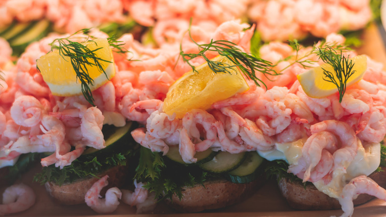 Shrimp salad on rye, a traditional Finnish snack
