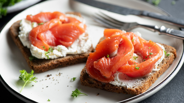 Smoked salmon or lox with cream cheese