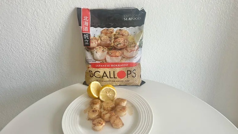 Costco has one of the best freezer sections in the supermarket game. With entire meals, a huge selection of veggies and fruits, breakfast items, desserts, doughs, and nearly every kind of protein you can imagine, you'll have a hard time leaving this aisle empty handed. The frozen seafood selection at Costco is also quite substantial, and there's lots of great options to choose from. If you're someone who doesn't live in an area with access to freshly caught fish, you probably rely on frozen to get the best tasting and "freshest" seafood possible. We ranked seven Costco frozen seafood staples and found the Japanese Hokkaido scallops by the East Coast Seafood brand to be the best of the best.