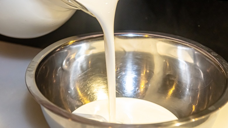 There's a cloud of confusion that hovers over creams. With at least 14 different types of creams readily available for you to purchase at the grocery store, it can be quite difficult to determine how each one differs from the next. And this proves to be even more complicated when you realize just how similar they all are. Of those creams, heavy cream and heavy whipping cream are the two people mix up the most. This stems from their similar names and close proximity to one another in the refrigerated section. Plus, they're often used in the same cooking and baking recipes. So, how do you tell them apart?