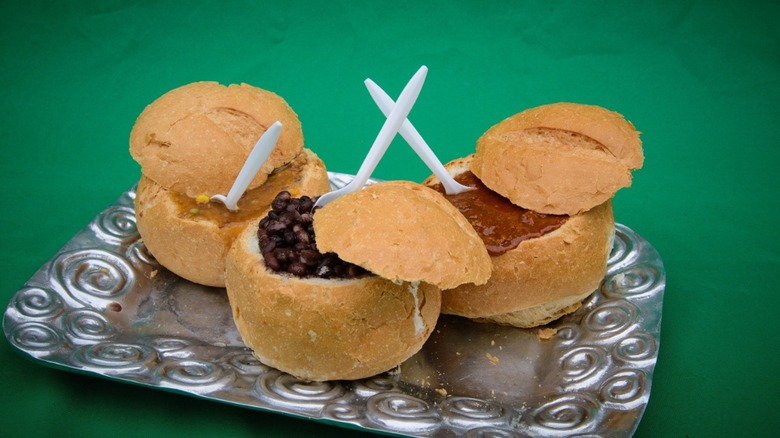 Bread bowls are probably my personal favorite Ren faire food, largely due to their variety, especially at the Texas Renaissance Festival. This festival is the largest Renaissance Faire in the world, and as such, has some of the best, most sprawling food options. At this faire, colloquially known as TRF, bread bowls abound at Admiral's Bread Bowls with soup fillings like broccoli cheese, chili, potato soup, gumbo, and Polish stew. There are also plenty of non-soup bread bowls at TRF, like spinach and artichoke dip, meatballs and marinara, and red beans and rice.