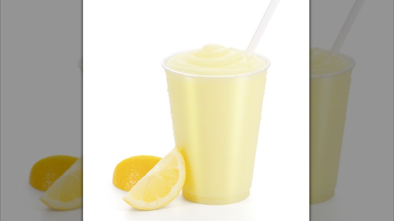 Frozen lemonade is made with simple ingredients — just ice, water, sugar, and lemons. At many faires, the ingredients are blended up fresh rather than made with an artificial powdered drink mix. The sweet, citrusy, frozen drink trumps regular lemonade on a hot day because it stays frozen and chilled for much longer, and it won't taste watered-down as it melts.