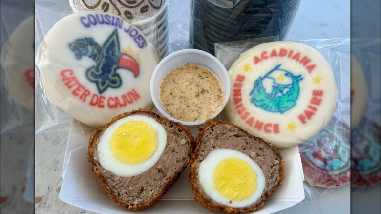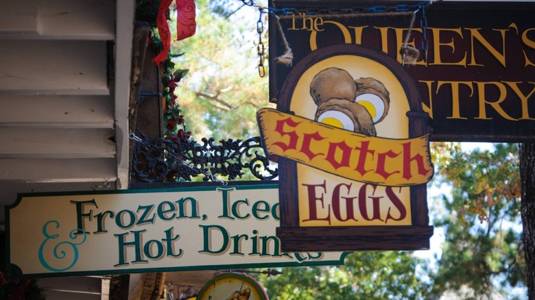 Scotch eggs don't actually have roots dating back to the Renaissance (or to Scotland, for that matter) but their handheld, rustic nature perfectly fits the vibe of Ren Faires. The dish is thought to have been created in the 1700s, with some claiming it was born in India, while others credit the English with inventing the savory treat. Nevertheless, Scotch eggs aren't commonly found on restaurant menus around the United States, and they're not the easiest thing to make at home, making them one of the most delectable indulgences that you're guaranteed to find at faire.