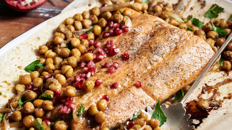 To pay homage to the Middle Eastern culture in Aladdin, the stolen bread, and the fresh fish — we think creating a flavorful fish plate is a great pairing with "Aladdin." This hot honey and pomegranate-glazed salmon recipe is a potential choice — it is Middle Eastern inspired, and contains some flavorful spices, chickpeas, pomegranate, and salmon. Pair it with some pita bread on the side, and you've got a meal that would make Aladdin go crazy!