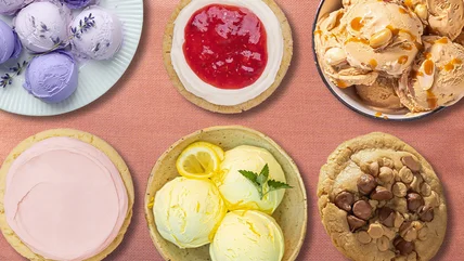 Blueberry is a flavor that you are likely to see as a normal ice cream or as a sorbet. We would recommend going the ice cream route here, as the creaminess is a great complement to this somewhat dry, cornbread-like cookie base.