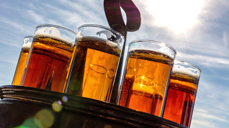 If you can't track down Fort Point's kölsch-style ale, look for traditional German offerings like Gaffel kölsch or American craft creations like Rogue's honey kölsch. You can even enjoy the pairing magic of this beer and fried rice without imbibing — Best Day Brewing's non-alcoholic kölsch is available on Amazon for $29.99 for a 12-pack. In a pinch, you can even reach for a flavored lager to nail that crisp-yet-fruity experience.