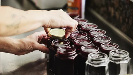 To enjoy, jam is often spread on toast, scones, and English muffins, or stirred into yogurt and oatmeal. Strawberry jam on plush white bread makes a classic PB&J. For an elevated, 'grown up' PB&J, pair this multilayered vanilla blackberry jam with almond butter on dark, robust pumpernickel. Or, spread Concord grape jam on savory turkey sandwiches for a pop of bright contrast. Jam is also commonly used in tarts and other baked goods, as it holds up well under the oven's high heat.