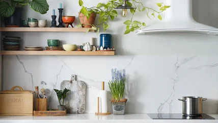 Open shelving is the perfect place to showcase pretty glassware and your favorite bowls. Plus, it provides extra storage space in areas of your kitchen that would otherwise be left unused, giving you heaps more room for showcasing trinkets, vases, and even pictures. However, before putting up those shelves, and arranging all your crockery in the perfect Insta-worthy position, consider if they'll mar or match your lifestyle. Items placed on open shelving can get mighty dusty and even greasy with cooking oils.