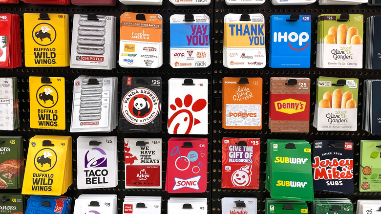 Costco is a place of unlimited opportunities. Whether you're planning to stock up on food before a big storm or order a custom cake for a birthday party, Costco has it all. The company's unique business model of handing out free samples draws both members and non-members into stores. So much so that in 2024, roughly 137 million people purchased an annual Costco membership, according to a recent Statista study. With over 600 warehouses within the United States (Rhode Island, Wyoming, and West Virginia have no stores) and over 250 international warehouses, it's no surprise that Costco is becoming the best place to buy restaurant gift cards. Not only does Costco have gift cards for popular fast food and sit-down restaurants, but they're offered for a discounted price.