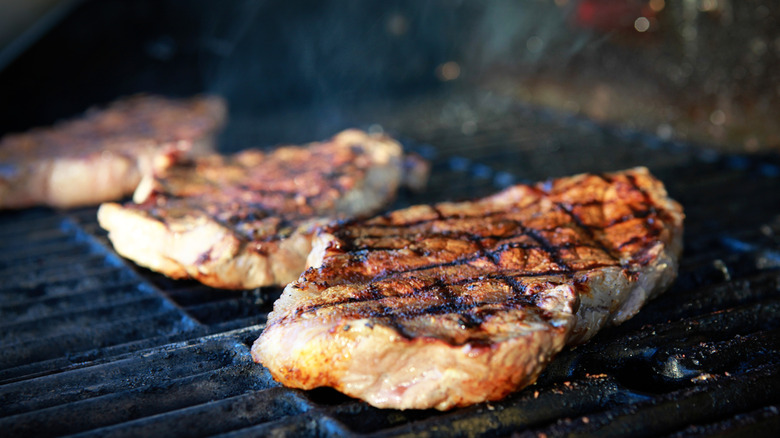 Jerk seasoning makes sense on your next steaks for many of the same reasons why it works so well with poultry and even vegetables. The blend offers a spicy kick thanks to the use of scotch bonnet peppers, which land relatively high on the Scoville scale, with between 100,000 and 350,000 Scoville heat units. Plus, there are unique spices that go into the blend to add flavor and balance the heat, like ground ginger, onion powder, cinnamon, paprika, and nutmeg. To make this upgrade to your next steak night easily, opt for a store-bought bottle of jerk seasoning. However, it's worth making your own to have control over the spice levels to match your desired flavor profile.