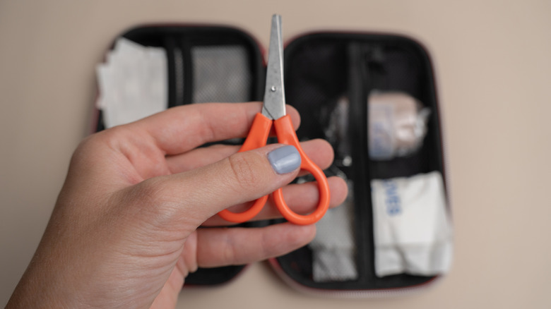 Keep a set of small, sharp scissors in your first aid kit