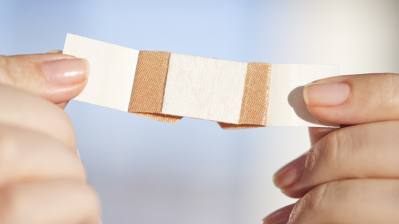 Your most versatile option is sterile gauze, which you can think of as the "universal bandage." It's good for soaking up the initial bleeding and then also for covering the wound afterward (with fresh gauze, of course). Gauze comes in long rolls or square pads, and I like to keep both on hand. Gauze doesn't have its own adhesive, so you'll also need medical tape (I prefer 3M's NexCare) in your kit to hold it in place.