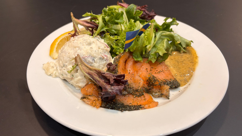 It should come as no surprise that a Swedish food court manages to do lox-like marinated salmon just right. And, indeed, IKEA's Stockholm salad was a big hit in my book as a whole. The salad featured slices of marinated salmon, mixed greens, a scoop of potato salad, a sweet dill-mustard dressing, and a lemon wedge. While it seemed like a hodgepodge of ingredients at first glance, the dish just really worked with all the ingredients together, which is why it came in second place on this list.