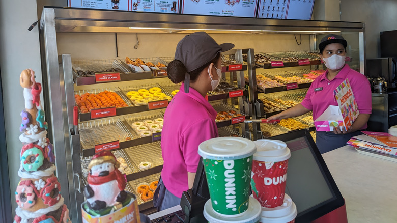 If you're the kind of person who likes to get more bang for their buck when you're ordering coffee, you're probably going to appreciate Dunkin's larger cup sizes. A large iced drink at Dunkin', for example, comes out to 32 ounces. By contrast, Starbucks' largest iced drink size is just 30 ounces. The largest hot coffee option at Starbucks comes out to 24 ounces, while you'll get 32 ounces of coffee if you order the largest size at Dunkin'. It seems like there's a clear winner here if you care about how much coffee you're getting in your cup when you order from either of these coffee chains.