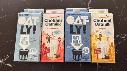 As for the price of each oat milk, that's going to vary a bit depending on where you shop, where you live, and whether or not your particular store has any deals or sales going on. At Whole Foods, I purchased the Oatly cartons (each 64 ounces) for $6.19 each, whereas the Chobani cartons (each 52 ounces) were $4.69. The Oatly ones seemed more expensive at first glance, but ultimately, the price per ounce comes out to about the same for both products, with Oatly's being about $.10 per ounce and Chobani's being $.09.