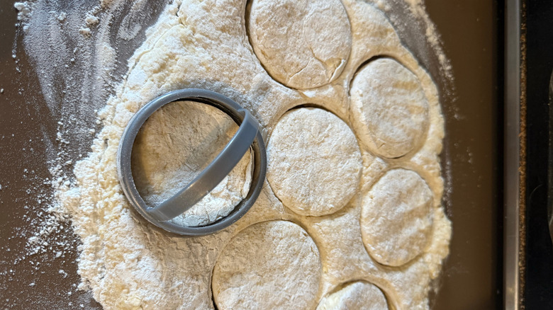 If you don't have a dedicated biscuit cutter at home, get creative. According to Craddick, the next best replacement is the "open side of a glass or cup." But be cautious; use the cup carefully. Try to avoid smashing down the edges of the biscuits as you separate each piece from the dough mass. Even if you are planning to grill the biscuits in a coat of butter, the shape and size of the pieces can impact the final texture of your culinary creation.