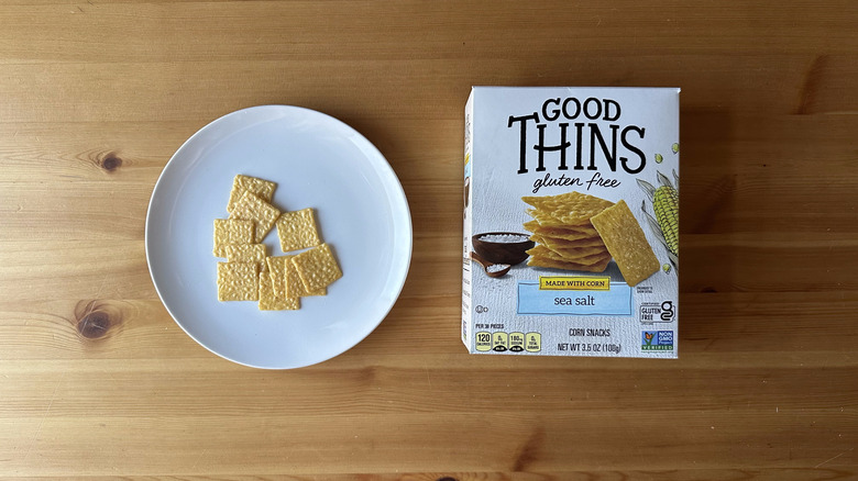One bite of these, and you'll feel like you're digging into a bag of crispy cornbread. The buttery, bread-y, sweet corn flavor is out of this world, and it's complemented by the addition of plenty of salt. The small size of these crackers means they're better suited for dipping instead of stacking, but honestly, they taste so good on their own that you may simply prefer to enjoy them without anything else. Gluten-free or not, this is a cracker brand you absolutely need to seek out, and was only bested by a single brand.