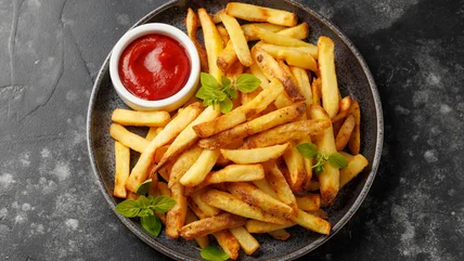 Russet potatoes are the best for making homemade fries because they are high in starch but low in moisture. This combination results in a fry that's crispy on the outside but tender in the middle. Coating fries in a cornstarch slurry will make them extra crispy, too. Simply dip your taters in the mixture and deep fry until they develop a golden crispy crust. You could also double fry your potatoes; once at a lower temperature to soften them and again at a higher temperature to crisp up their exterior.