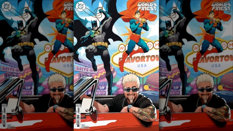 The host of "Diners, Drive-ins, and Dives" has had an exciting year. Just three months into 2025 Fieri is not only making his first appearance in the DC comic universe, but he's also opened a new restaurant in Manhattan and launched a new set of Flavortown wing sauces. Looks like the Marvel Cinematic Universe is just going to have to wait its turn to get its hands on the Boss of Sauce. Fieri joins a long list of other celebrities who have made guest appearances in the DC comic universe, including Jerry Seinfeld, Frank Sinatra, and even Nicolas Cage.