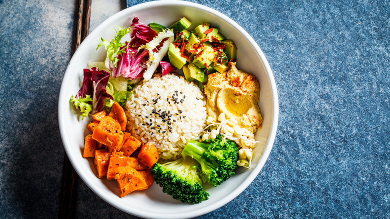 Create the perfect macrobiotic bowl by placing chopped dried seaweed edamame, snap peas, asparagus, broccoli, quinoa, brown rice, mizuna, and carrots in a bowl. Then, cover it with a dressing of sunflower seeds, butter, water, lemon and salt for a crunchy, colorful salad bowl that would have made Lennon proud.