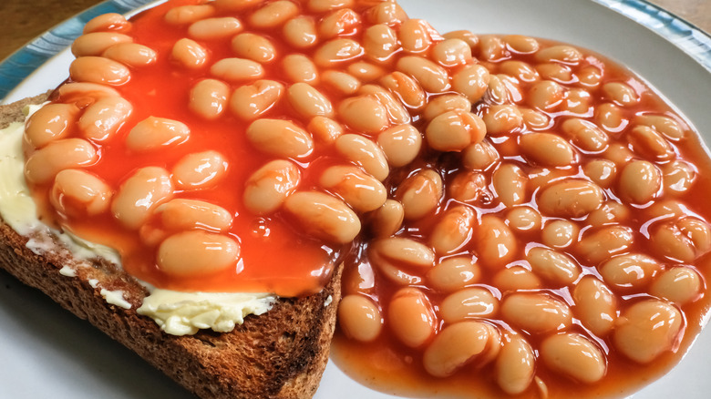 Baked beans are another British staple, and not just any beans — it has to be Heinz. They've been around since 1901, and you'd be hard-pressed to find a house in the U.K. that doesn't have a tin of beans lurking somewhere in the cupboard. There's even a museum in London entirely dedicated to the glorious tomatoey bean. Baked beans can be eaten as part of an English breakfast, piled on top of a baked potato, devoured alongside fried eggs, or loaded on buttered bread and topped with a sprinkle of grated cheese. British to the core, Ringo even enjoyed his favorite food when he was India alongside specially prepared eggs without even a hint of Indian spice.
