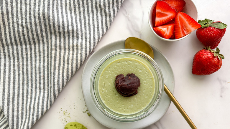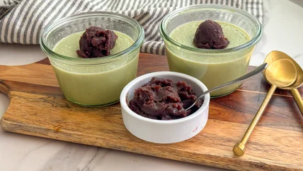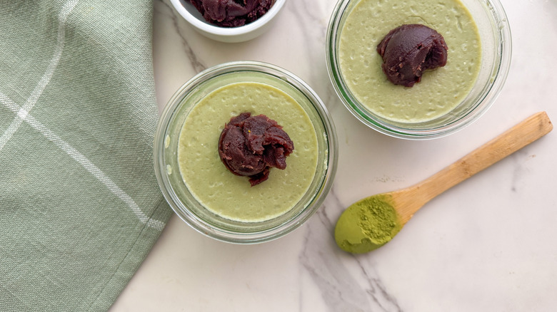 Matcha is becoming an increasingly popular flavor in the U.S. and beyond, and can be found in most coffee shops around the country in latte form. If you're a matcha fan and have ever wondered if its applications extend beyond milky drinks, you'll be delighted to learn about this silky matcha pudding with sweet red bean paste. The pudding is an attractive and creamy dessert with the bold unmistakable taste of matcha. It's sweetened slightly with maple syrup and blended with milk and heavy cream for the ultimate smooth and creamy texture. Unlike common chia puddings that are popular today, this version, inspired by traditional Japanese flavors, has a velvety texture and is rich and light all in one bite. Topping it with nutty and sweet red bean paste adds a touch of contrasting color and texture and an earthy sweetness.