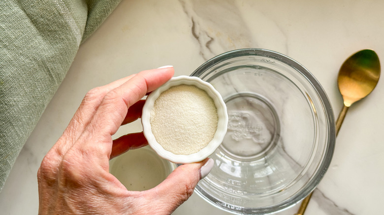 - Mix the gelatin and ½ cup water in a small bowl and let sit for 5 minutes.