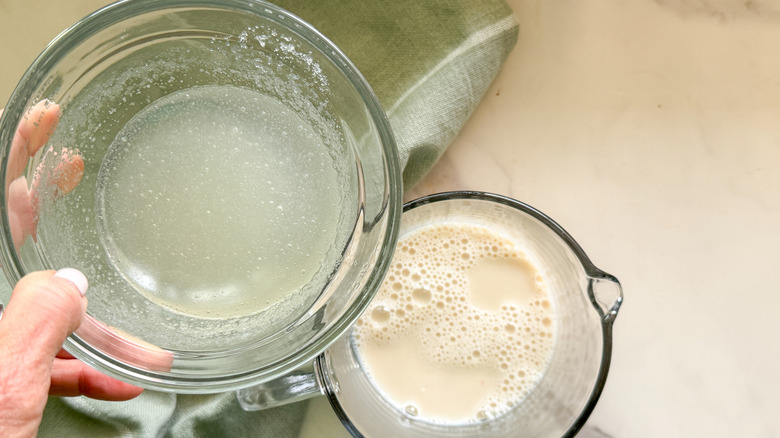 - Transfer the warm milk to a bowl and whisk in the gelatin.