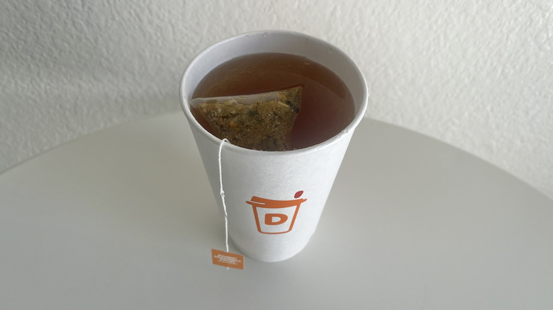 Perhaps the weakness could be solved by using two tea bags, but you're effectively doubling the price of something that already isn't very good. While you can spice up black tea by customizing it with milk or sweetener, you shouldn't have to rely on add-ins to make it taste better. Although it's slightly more interesting than Dunkin's chamomile tea, a good black tea can stand on its own, and this one doesn't.