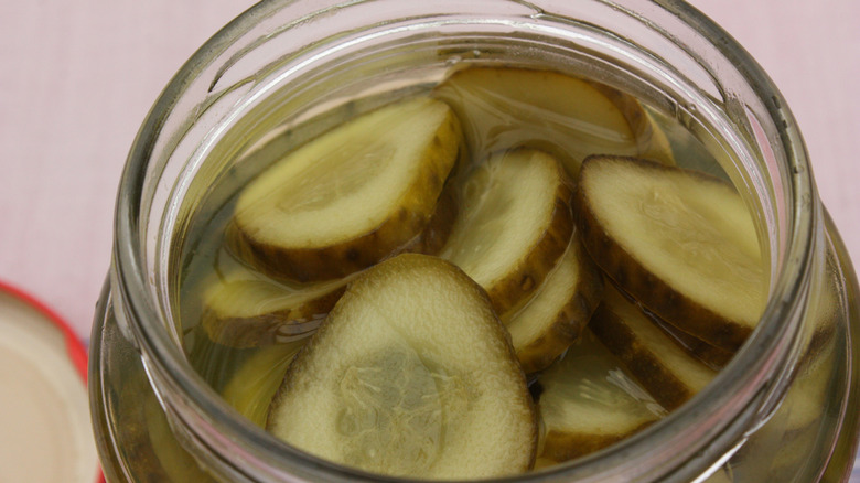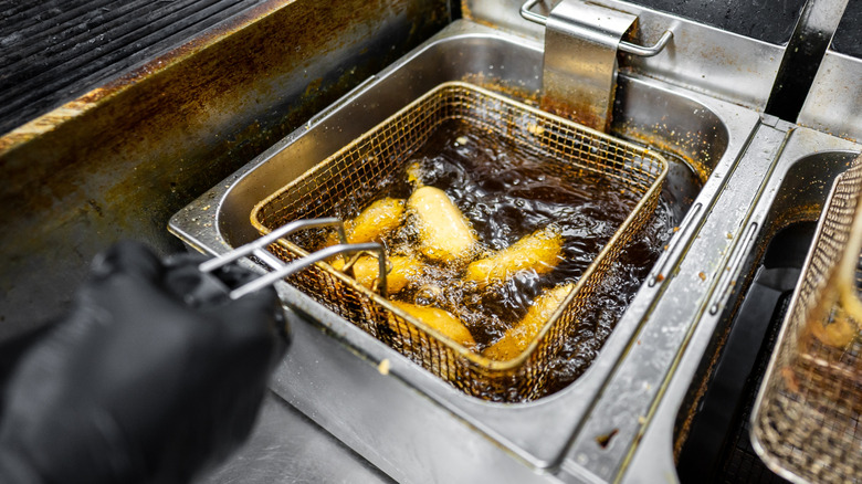 Although a whole batch of fried pickles may technically fit into your deep-fryer or frying pan, you could end up with an unevenly cooked blob if you fry everything at once. Colombi and Jutras told Tasting Table, "Avoid overcrowding the pan to maintain the oil temperature and ensure the pickles fry evenly." Since the oil temperature will drop as soon as anything is added to the oil, the less pickles added to the fryer, the faster the temperature will get back to that ideal 350-degrees Fahrenheit.