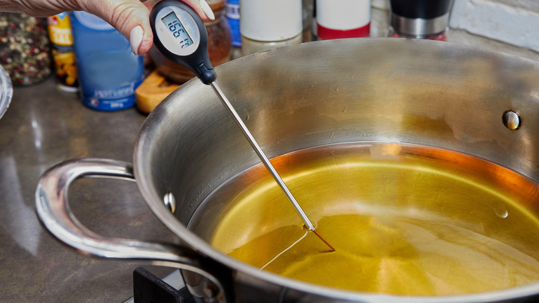 You may already be very experienced with frying food at home, but that doesn't mean you can just eyeball the temperature of your oil. And even if you know some DIY tricks for testing if frying oil is ready, you still risk a frying mishap without the accuracy of a thermometer. Keep in mind that during the frying process, the temperature of the oil will lower once food is added to it. A thermometer is an essential tool in this case, helping ensure consistency between batches while frying.