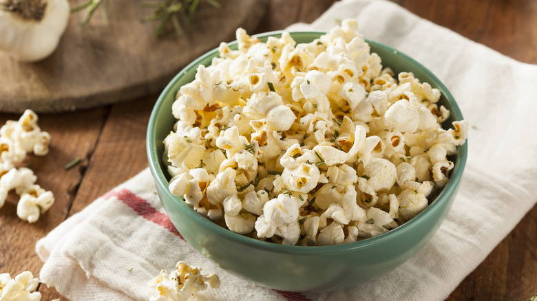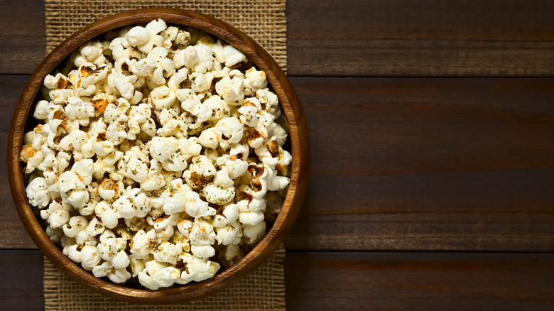 With origins going back for centuries, the spice has been used to flavor all kinds of foods across the Middle East. The earthy, herbaceous, tangy blend brings a one-of-a-kind flavor to dishes, and all with ingredients that are fairly easy to come by. Za'atar is made from toasted sesame seeds, as well as earthy thyme, oregano, and marjoram. The various herbs range from piney and aromatic to zesty with a peppery edge, giving your popcorn a deeply-layered taste. What really elevates this snack, however, is the sumac — a tart and lemon-tinged spice with a floral sweetness that rounds out the flavors and makes your popcorn even more satisfying.