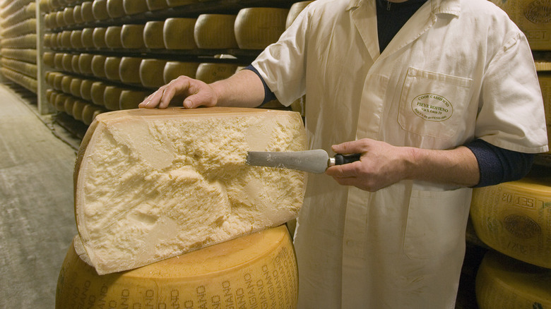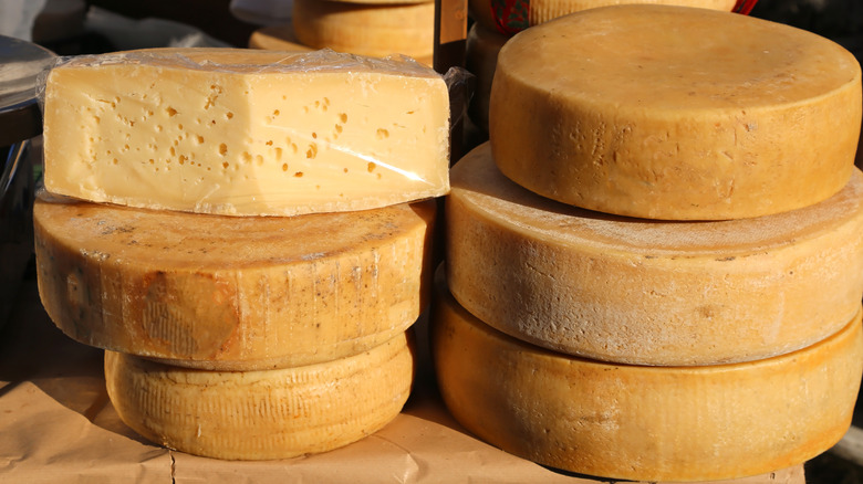This microflora plays a crucial role in developing the rind, which promotes a more uniform texture and flavor throughout the cheese wheel. "As the cheese ages," Bonilla continues, "the rind is used as protection from harmful bacteria and allows for moisture to slowly evaporate" This process creates aged cheeses, like Parmesan and Gouda. The more moisture that evaporates, the stronger the flavor becomes, she explains. Ensuring the microflora remains on the surface contributes to the specific type of cheese being made. The reason some cheeses — particularly the washed-rind ones — smell so bad is that the microflora is encouraged to grow and multiply on the surface, often with the aid of brining.