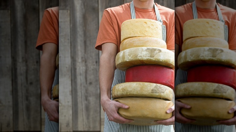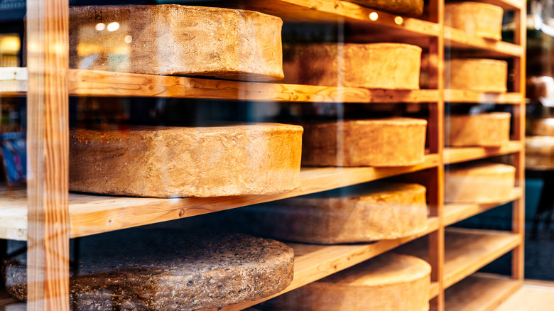 There's a difference between commercially-made and artisanal cheese, the latter referring to cheese crafted in small batches, typically by skilled professionals. Their method is more traditional and usually relies on locally sourced ingredients. David Major tells us, "In modern times, much cheese is aged vacuum-sealed in plastic." You see these blocks at your local grocery store's deli. "These cheeses are typically made in blocks," he explains, "because their aging involves no mold." Some popular brands of cheese that make cheddar, Monterey Jack, Colby, or processed cheese fit this description.
