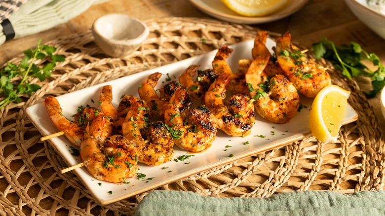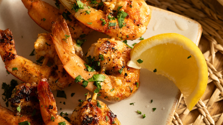 This grilled shrimp recipe is delicious as a stand-alone dish whether for a snack, light lunch, or a starter. However, there are also plenty of other ways to serve up this copycat Texas Roadhouse menu item. As they do in the restaurant itself, you could serve these grilled shrimp on top of your own homemade garlic bread, marrying the herby spiced and sweet shrimp meat with deliciously decadent butter and garlic-soaked bread. Alternately, you could grill your favorite Texas roadhouse-style steak — we recommend a bone-in ribeye steak — for a wonderfully indulgent surf and turf dinner from the comfort of your own kitchen. Don't forget a side of fries, a loaded baked potato, or tater skins to complete your Texas Roadhouse-style dinner.
