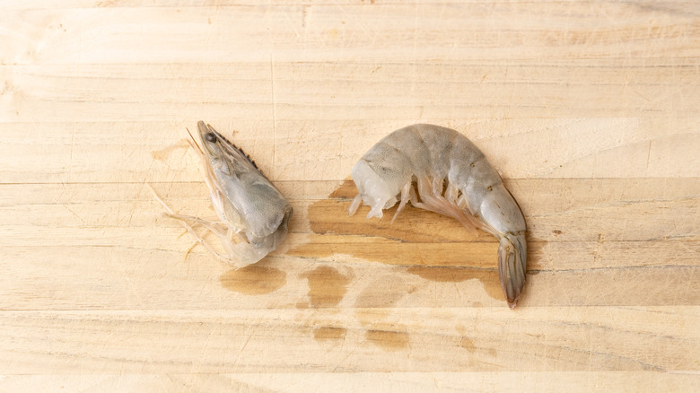 - To prepare the shrimp, begin by twisting off the heads.