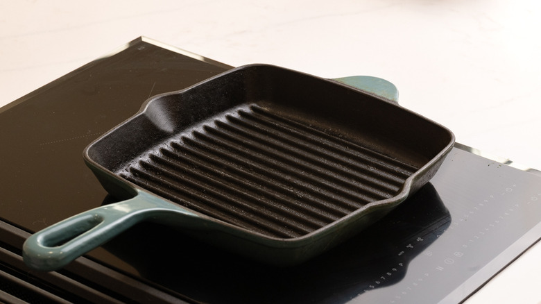 - Heat a heavy bottom pan or griddle pan to a medium-high heat.