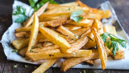 First and foremost, choose the right potato. McDonald's uses four varieties of potatoes for its famous fries, but Colombi and Jutras recommend russets: "Russet potatoes are ideal for French fries because of their high starch content and low moisture." Both factors are important for cooking fries that have crunchy exteriors and fluffy interiors.