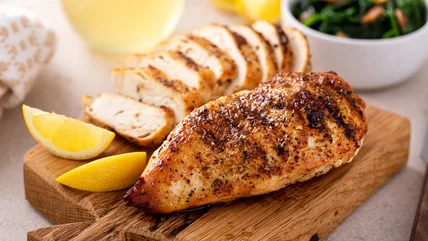 From there, remove the meat from the marinade and use a fun chicken breast seasoning idea before tossing it in your baking dish of choice with some parchment paper. Whether you go for a BBQ spice, lemon and garlic, or even a mixture of brown sugar, garlic, salt, and pepper you're guaranteed to have a delicious, and juicy, meal. Serve your chicken with a Pinot Noir for the perfect wine pairing, and you'll be glad you stayed home for dinner.