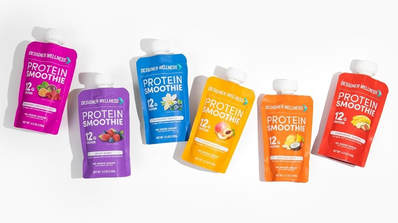 The smoothie is made from whey protein isolate, fruit purees including raspberry, banana, and strawberry, and monk fruit, which is a low-calorie natural sweetener. With sugar content ranging from 5 to 7 grams per serving (depending on the fruit variety), it's also lower in natural sugars than many other fruit smoothies. These drinks offer 1 gram of dietary fiber per serving.