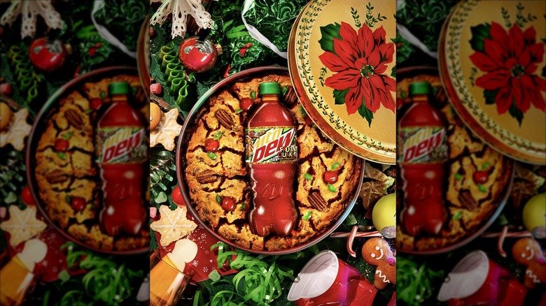Another divisive Mountain Dew flavor makes our list of soft drinks we'd prefer to stay off the shelves. While we commend the company for experimenting, it's clear that not every flavor is a winner. Mountain Dew Fruit Quake was the company's limited-release holiday flavor in 2022, following in the footsteps of the Holiday Brew, Merry Mash-Up, and Ginger Snap'd flavors. Inspired by the classic, yet famously hated, holiday fruitcake, it seems like an odd choice for a beverage flavor. Fruitcake is often dry and lumpy (although it doesn't have to be), making it just as divisive as the Mountain Dew Fruit Quake soda.