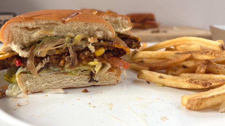 The patty on this burger doesn't try to mimic beef which, in BWW's case, is probably a good thing. It had some flavor missing from the other selections on this list, and corn and veggies came through well, as did the Southwestern Ranch on the burger. The guacamole wasn't super perceptible but it did add a barely-there brightness that I appreciated. In the realm of Southwestern burgers, I've absolutely had better. Compared to Buffalo Wild Wings' other burgers, this was easily my number two pick.